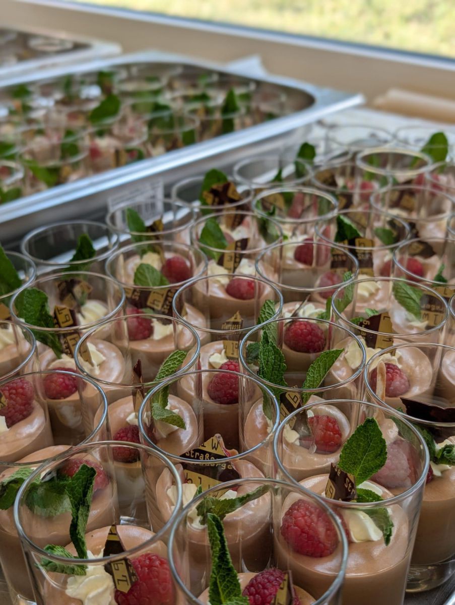 Für rund 70 Ehrengäste wurde ein hochwertiges 3-Gänge-Menü serviert – inklusive Aperitif, Shrimps-Cocktail, klassischem Zwiebelrostbraten beziehungsweise vegetarischer Alternative sowie einem warmen Schoko-Nuss-Kuchen. Abgerundet wurde das kulinarische Angebot durch eine ausgewählte Weinbegleitung.