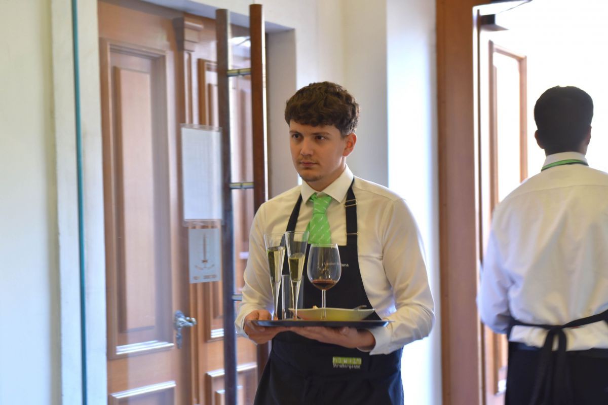 Auch beim Sektempfang im Eingangsbereich sowie bei der Betreuung der Getränkestationen bewiesen die SchülerInnen ein hohes Maß an Professionalität, Organisationstalent und Teamarbeit. Das reibungslose Zusammenspiel aller Beteiligten – von Service über Küche bis hin zum Sicherheitsdienst – trug maßgeblich zum Erfolg der Veranstaltung bei.