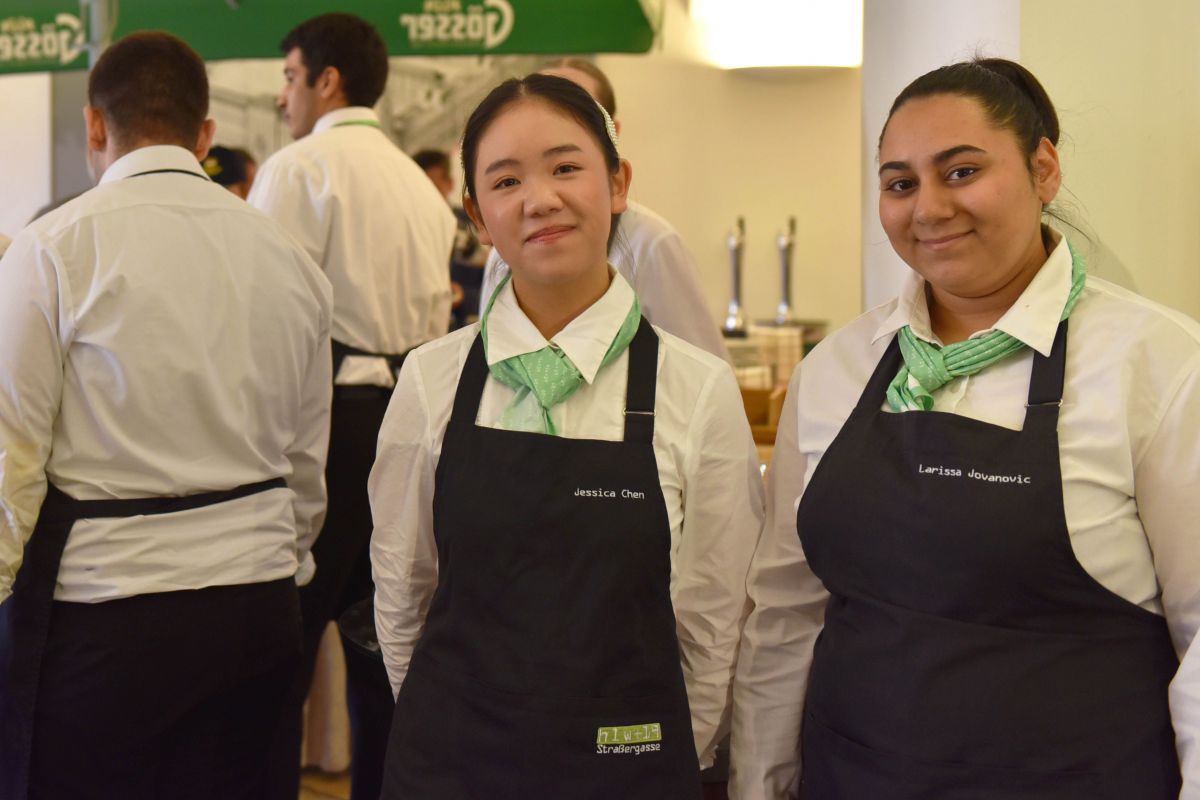 Einen wesentlichen Beitrag zum Gelingen der Veranstaltung leisteten die SchülerInnen der HLW 19. Nach ihrer Ankunft wurden sie umfassend gebrieft und auf ihre vielfältigen Aufgaben vorbereitet. In weiterer Folge übernahmen sie zentrale Bereiche im Service sowie in der Organisation.